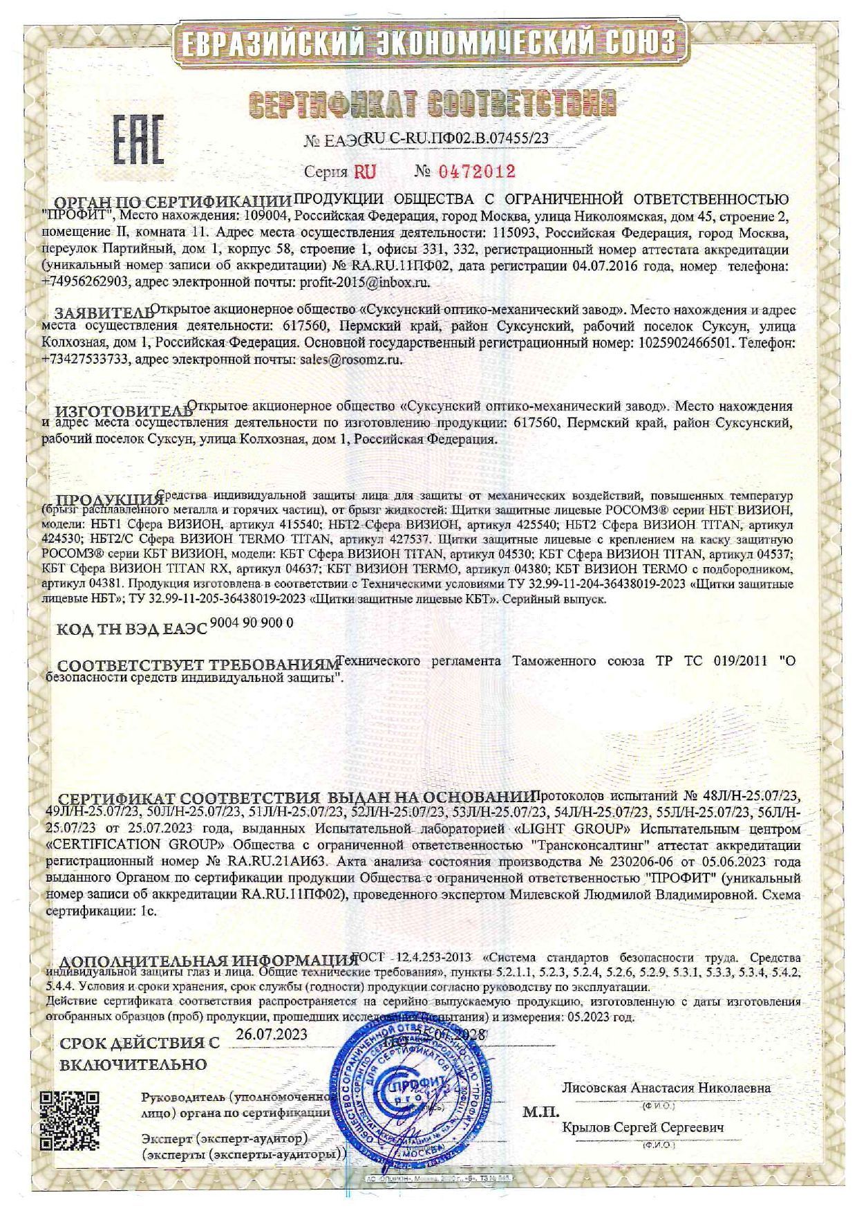 Щиток защитный НБТ2 Сфера ВИЗИОН (425540)